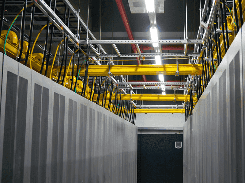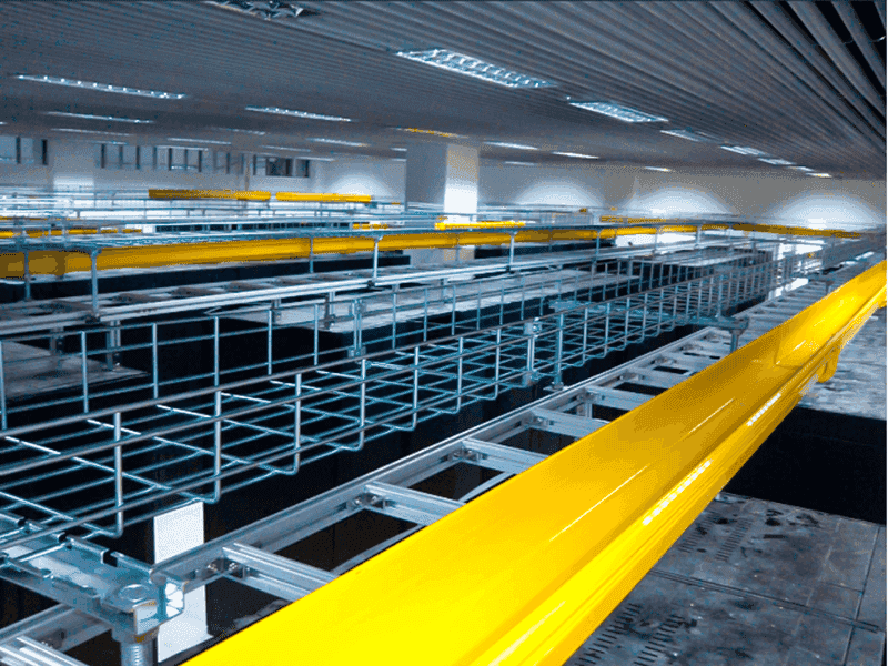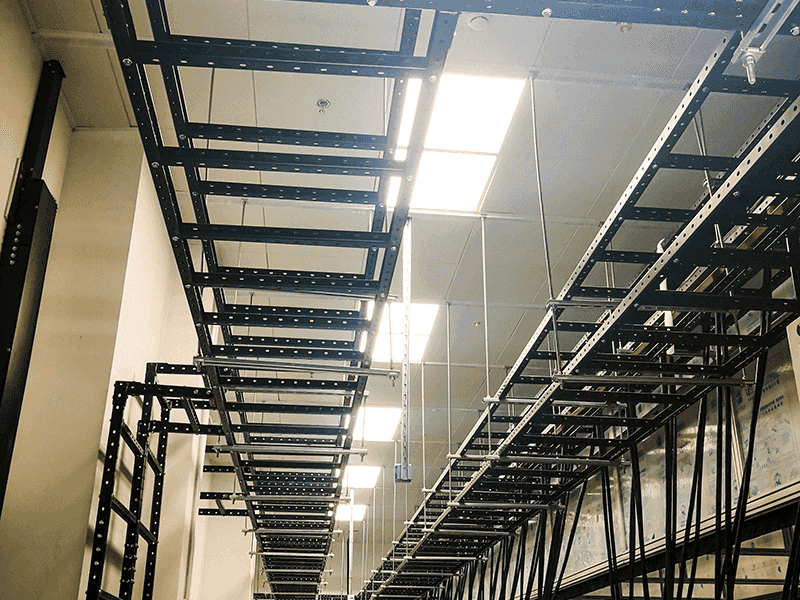 BANDEJA DE CABLES DE MALLA DE ALAMBRE Y BANDEJA DE FIBRA EN CENTRO DE DATOS